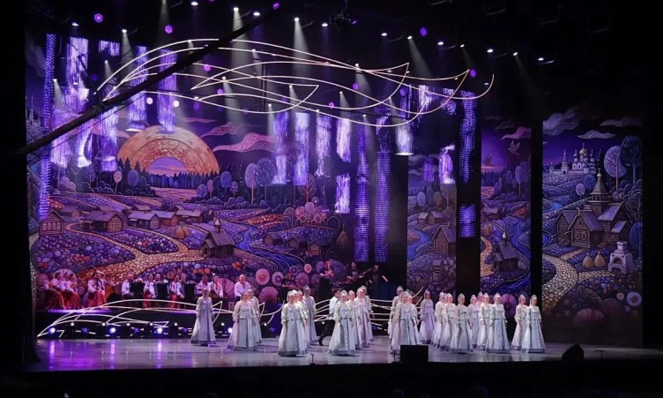 Концерт «Песнь Русского Севера» объединил хореографические этюды, фольклорные композиции, игру на гуслях и балалайках, а также гала-выступления известных музыкантов. С вековым юбилеем артистов поздравил президент России Владимир Путин. В своем обращении, которое со сцены зачитал